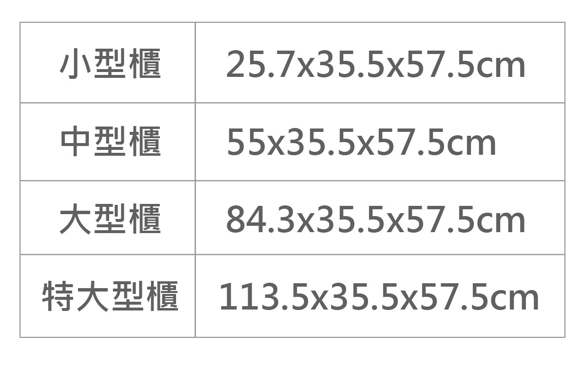 各地設置的置物櫃大小不同